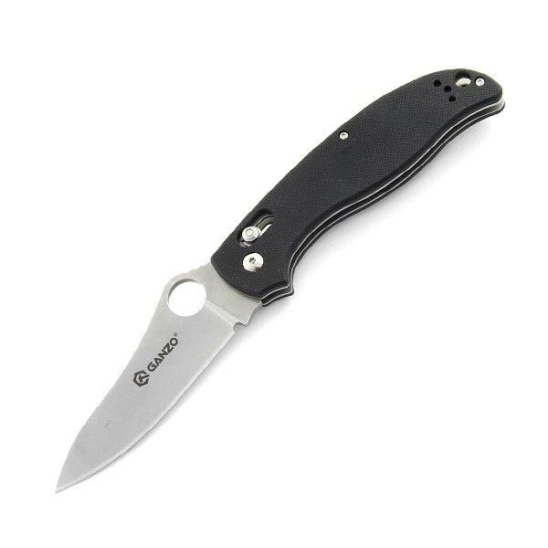 Компания Ganzo предлагает оценить преимущества модели ножа G733. Это аккуратный на вид и очень практичный по сути нож, который адресован любителям поездок на природу. Клинок этого ножа — нержавеющий. Он выполнен из сплава 440С — нержавеющей стали, которую можно закалить до 58HRC. Полученный клинок может долгое время оставаться хорошо заточенным, легко работает с разными по структуре материалами, выдерживает контакты с водой и другими активными с точки зрения коррозии веществами. Лезвие клинка ровное, что является классическим вариантом заточки. Его длина — 9,1 см. Со стороны обуха, толщина металла — 3,3 мм. Его форма — видоизмененный drop point. Острие немного опущено по сравнению с линией обуха, но режущая кромка все же повышается. Ближе к рукоятке, клинок существенно расширяется. В этой части располагается отверстие, роль которого — быть шпеньком при открывании клинка.