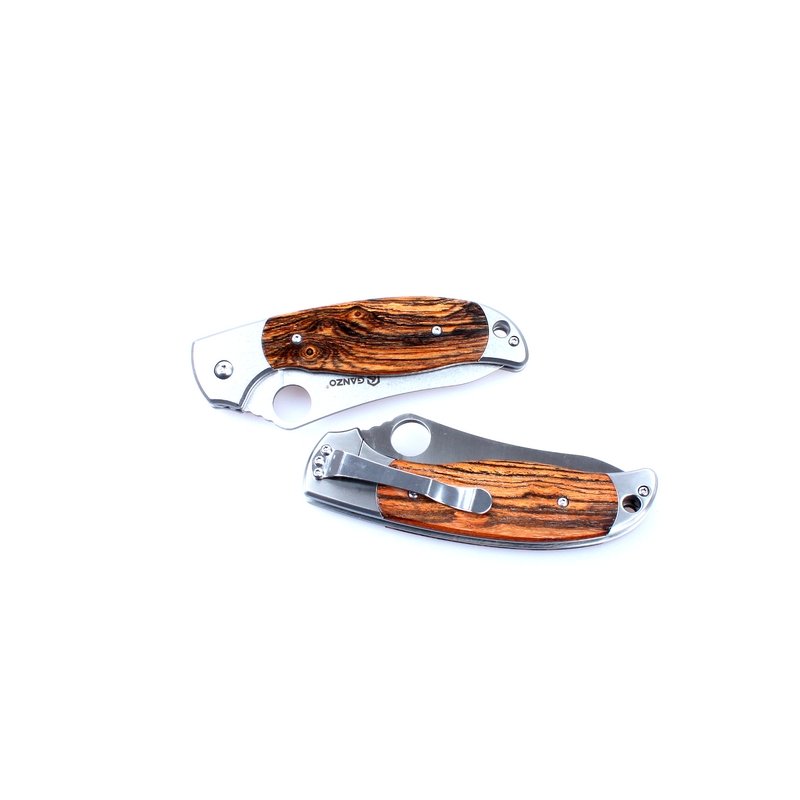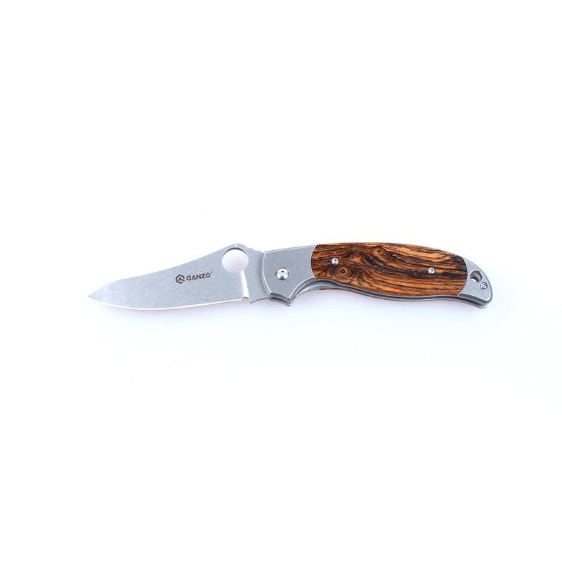 Для ножа Ganzo G737-2WD1 выбраны красивые и долговечные материалы. Но его популярность обеспечивает еще и высокое качество исполнения данной модели. Клинок ножа отлит из нержавейки с большим уровнем твердости — стали 440С. Лезвие обработано особым образом: так, чтобы металл выглядел практически матовым. Это помогает маскировать небольшие царапинки, которые могут появиться при использовании ножа, а также делает незаметными отпечатки пальцев или другие следы. Кромка ножа заточена гладко. Этот способ затачивания считается классическим и является наиболее универсальным. Помимо того, что клинок ровно режет самые разные материалы, с его помощью можно и колоть. Ведь основой для формы лезвия Ganzo G737-2 стал вариант drop-point. Правда, к рукояти лезвие имеет существенное повышение линии обуха. Эта особенность позволила разместить на клинке отверстие, которое используется как шпенек для открывания.