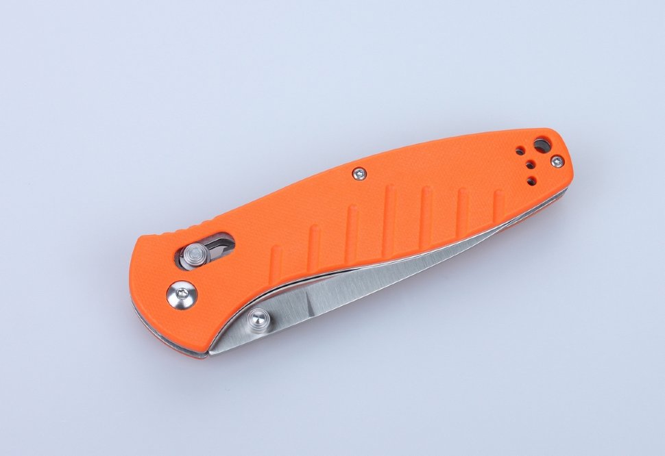 <comment>Купил себе G738 в начале мая. Скорость доставки, как всегда, очень порадовала, а вот качество сборки ножа - не очень :( Плюсы: 1) Эргономичность и заводская заточка хорошие. 2) Реальный оранжевый нож не такой вырвиглазно-яркий, как на фото(в траве/листьях видно, грязь на рукоятке не сильно заметна). Минусы: 1) Очень тугая пружина замка. За 2-е суток домашнего использования и привыкания к ножу с таким открыванием, заработал небольшой кровоподтёк под ногтем большого пальца(при открывании ножа) и немного сточил сам ноготь сбоку(при разблокировке замка). Пришлось разбирать нож и подгибать пружины так, чтобы открывать замок подушкой пальца, а не ногтем. 2) Клипса сделана из твёрдой стали и имеет толщину 1мм. Носить на ремне/кармане джинсов нереально из-за невозможности её отогнуть от рукояти. Возможно, поможет ослабление 3-х держащих винтов, либо можно сделать тонкую прокладку, чтобы появилось небольшое расстояние между клипсой и рукоятью. Так как не ношу ножи в карманах, то клипсу открутил. Держащие её винты, решил снять вместе с ней. Поскольку отверстия, под винты клипсы, сделаны с 2-х сторон рукояти, то снятие винтов сделало отверстия сквозными, что упростило чистку. К тому же, так нож чуть меньше весит и будет 3 запасных винта.</comment>