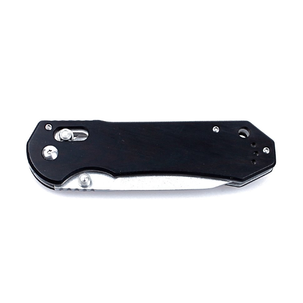Модель Ganzo G7452 WD2 одинаково высоко ценится пользователями за высокое качество и отличный внешний вид. Этот нож — практичный, удобный и долговечный, выполненный по современным технологиям и из классических для ножей материалов. Его клинок сделан из нержавеющего металла, что позволяет использовать нож на рыбалке или в любых других загородных поездках. Сталь 440С (а используется именно она), отлично держит острую заточку, поскольку ее твердость равна 58HRC. Повторно заточить нож, когда придет пора это сделать, можно любой карманной точилкой. Вариант заточки у Ganzo G7452 WD2 — универсальный, с ровной кромкой по всей длине лезвия. Клинок заканчивается острием, поскольку его форма — drop-point. Поверхность лезвия гладко отшлифована, но на солнце оно не блестит. Этому способствует выбранный вариант шлифовки — stone-washed. Таким же способом обработаны и стальные элементы на рукоятке ножа. Основная же роль в качестве материала для рукоятки принадлежит дереву. Из него изготовлены накладки, прикрученные к основе четырьмя винтами. Чтобы дерево не впитывало воду и прослужило как можно дольше, эти детали прошли специальную обработку. Помимо того, накладки покрашены в черный цвет.