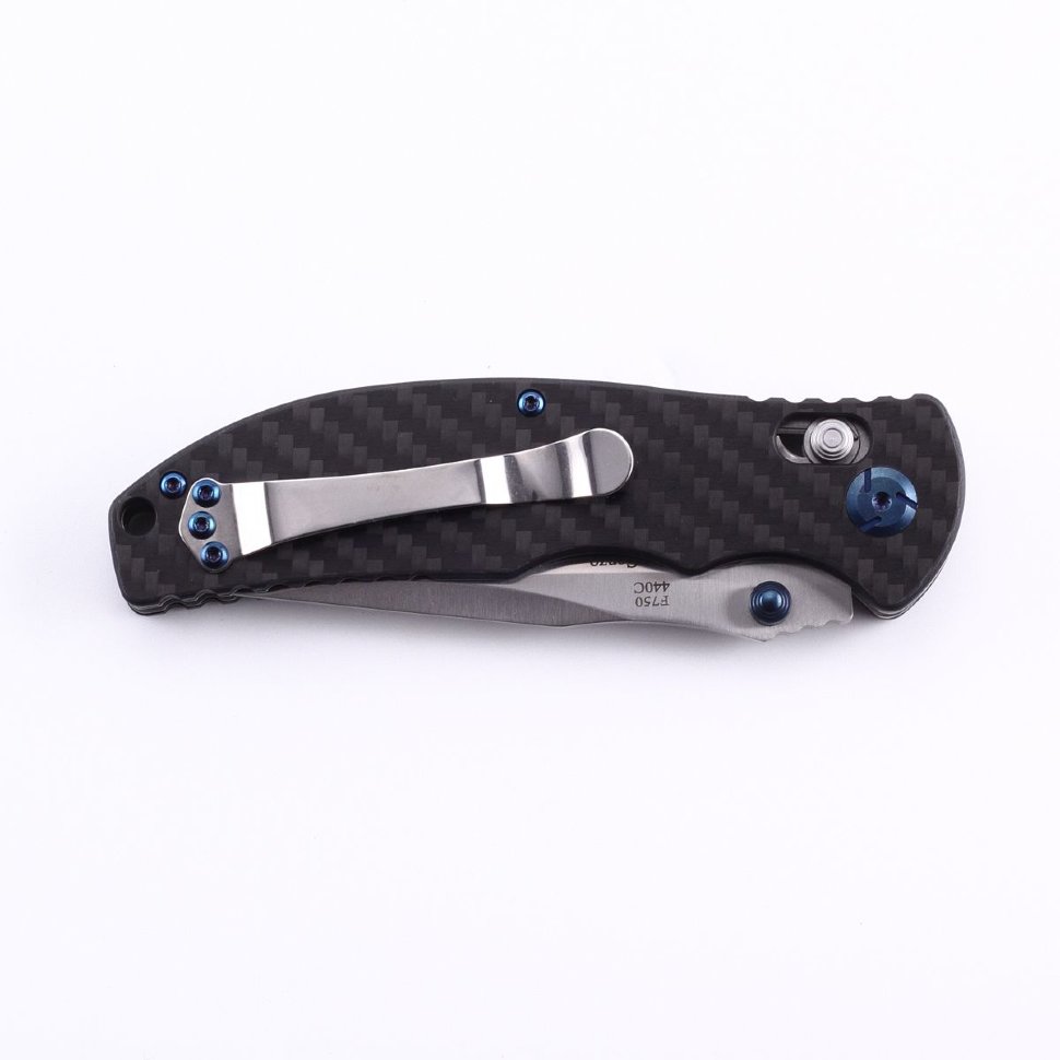 Абсолютно все складные ножи Ganzo комплектуются тем или иным замком. И для наибольшей универсальности в модель F7501-CF был установлен замок Axis-lock. Именно такой замок позволяет открыть или закрыть нож одной рукой, прилагая для этого минимум усилий. К тому же, в исполнении Ganzo, данный замок обладает отличными показателями прочности и выдерживает крайне большие нагрузки.