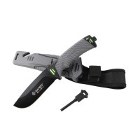Из этого же вида пластика, а также из нейлона сделаны ножны для Ganzo G8012. Помимо того, что они защищают от повреждений клинок и обеспечивают удобство транспортировки ножа, в них встроены элементы с дополнительной функциональностью. Благодаря ним, нож будет полезен в еще большем количестве ситуаций. В ножнах закреплено огниво, которое можно достать и использовать отдельно. Помимо того, производители оснастили его стропорезом для быстрого перерезания любых веревок или особо прочных тканей. А на конце рукоятки есть стеклобой. Поэтому, куда бы вы ни отправились с Ganzo G8012, этот нож всюду окажется максимально полезным.