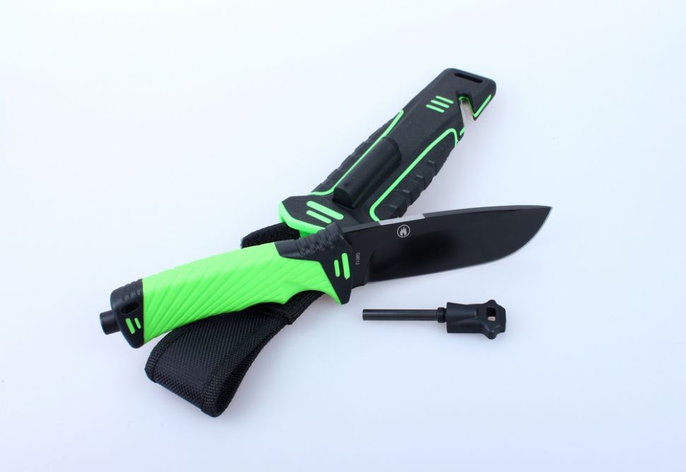 Из этого же вида пластика, а также из нейлона сделаны ножны для Ganzo G8012. Помимо того, что они защищают от повреждений клинок и обеспечивают удобство транспортировки ножа, в них встроены элементы с дополнительной функциональностью. Благодаря ним, нож будет полезен в еще большем количестве ситуаций. В ножнах закреплено огниво, которое можно достать и использовать отдельно. Помимо того, производители оснастили его стропорезом для быстрого перерезания любых веревок или особо прочных тканей. А на конце рукоятки есть стеклобой. Поэтому, куда бы вы ни отправились с Ganzo G8012, этот нож всюду окажется максимально полезным.