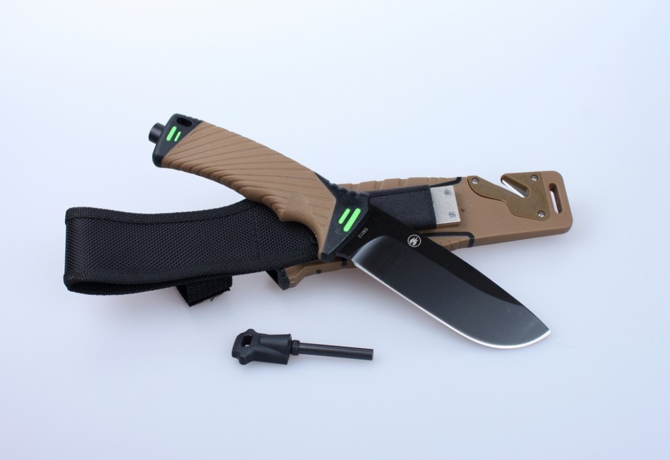 Из этого же вида пластика, а также из нейлона сделаны ножны для Ganzo G8012. Помимо того, что они защищают от повреждений клинок и обеспечивают удобство транспортировки ножа, в них встроены элементы с дополнительной функциональностью. Благодаря ним, нож будет полезен в еще большем количестве ситуаций. В ножнах закреплено огниво, которое можно достать и использовать отдельно. Помимо того, производители оснастили его стропорезом для быстрого перерезания любых веревок или особо прочных тканей. А на конце рукоятки есть стеклобой. Поэтому, куда бы вы ни отправились с Ganzo G8012, этот нож всюду окажется максимально полезным.