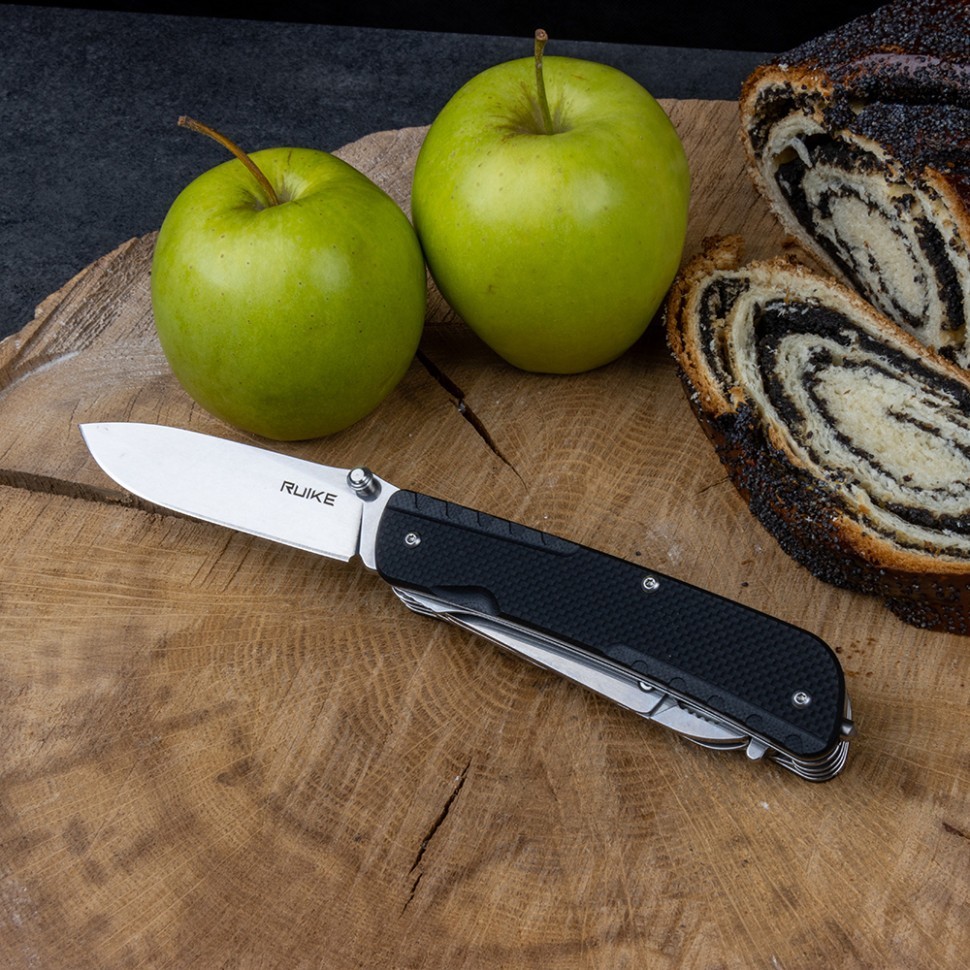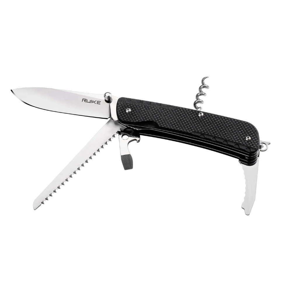 Нож Ruike Trekker LD32 выглядит просто отлично: у него не слишком вычурный, но при этом стильный дизайн. А его практичность просто поражает: в таком небольшом ноже поместилось аж 13 различных по функциям инструментов. Среди них пила по дереву, несколько отверстий для очистки проводов от изоляции, две отвёртки, открывалка, штопор, колечко на ключи и стеклобой. Кроме того, внутри ножа размещается полностью съёмный пинцет.