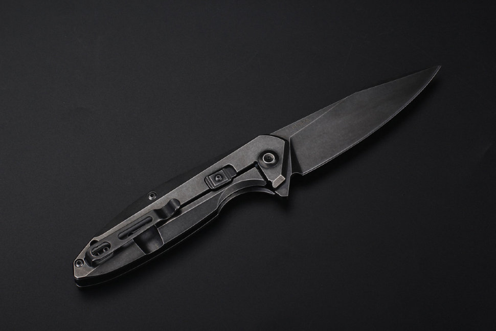 Финальная обработка лезвия и ручки ножа сделана одинаковой. Детали выглядят практически матовой за счет галтови (также известной под названием Stone wash). В дополнение к этому, и лезвие, и рукоятка окрашены в черный цвет, а потому нож совсем не бликует.
