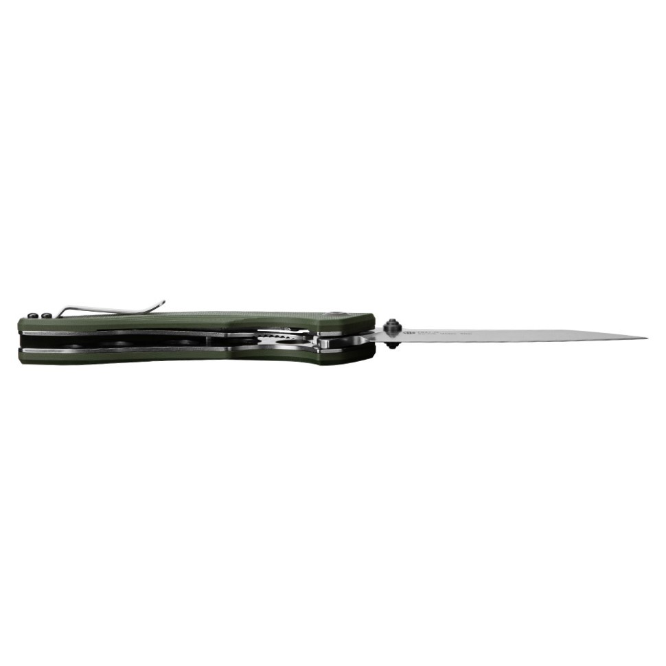 Лезвие обладает матовой текстурой поверхности, поскольку на финишном этапе изготовления было отшлифовано при помощи технологии Brushed. За счет использования крупнозернистого абразива, на поверхности металла остаются множество мелких однонаправленных царапин-рисок, которые создают матовую текстуру и маскируют любые мелкие потертости ножа. Прямая заточка лезвия позволяет использовать нож для самых различных задач.
