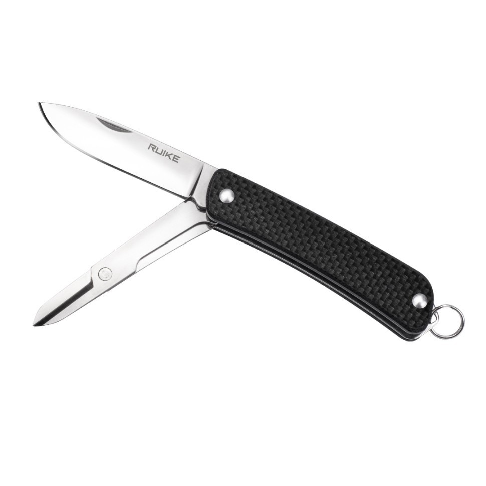 Помимо ножа, модель Ruike S22 располагает еще и складными ножницами, которые открываются так же, как и основной клинок. Они компактные, но довольно практичные и позволят легко вскрывать упаковку, разрезать различные шнурки и аккуратно обрезать нитки.