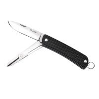 Главный элемент Ruike S22 – это нож. Его клинок имеет длину 53 мм, тогда как толщина обуха не превышает 3 мм. Удобная форма, которую в ножевой индустрии принято называть drop-point, делает нож чрезвычайно удобным и универсальным. Лезвие заточено по всей длине линии реза ровно и выполнять повторную заточку ножа не сложно даже самостоятельно при помощи ручных инструментов. Поверхность лезвия хорошо отшлифована и ухаживать за ней также не сложно. Открывается нож вручную, для чего на клинке есть специальная насечка, за которую его можно поддеть. А в открытом положении он удерживается при помощи фиксатора Slip-joint. Хотя такой механизм и не дает совершенно жесткой фиксации, он предотвращает случайное складывание этого ножа.