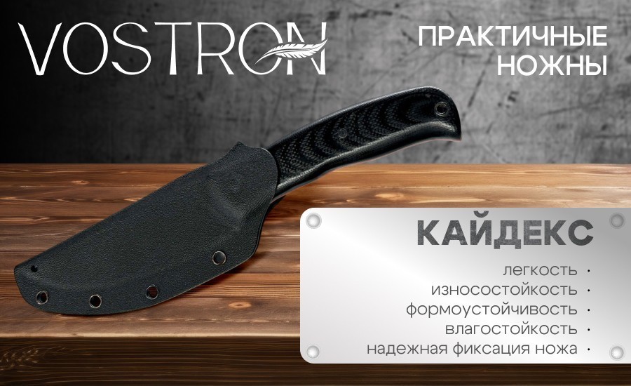 Для удобного и безопасного хранения в комплекте предусмотрены ножны из кайдекса. Кайдекс обладает высокой прочностью, гибкостью, износостойкостью и влагостойкостью, что делает его отличным материалом для ножен. Поверхность ножен легко очищается и не требует сложного ухода.