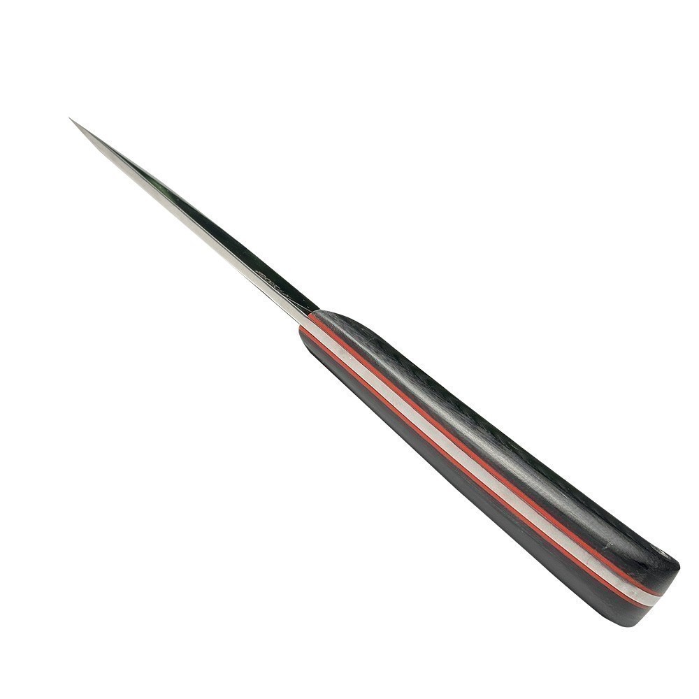 Рукоять черного цвета с красной полосой по внутренней части накладок придает ножу стильный и аутентичный внешний вид. Есть отверстие для темляка.