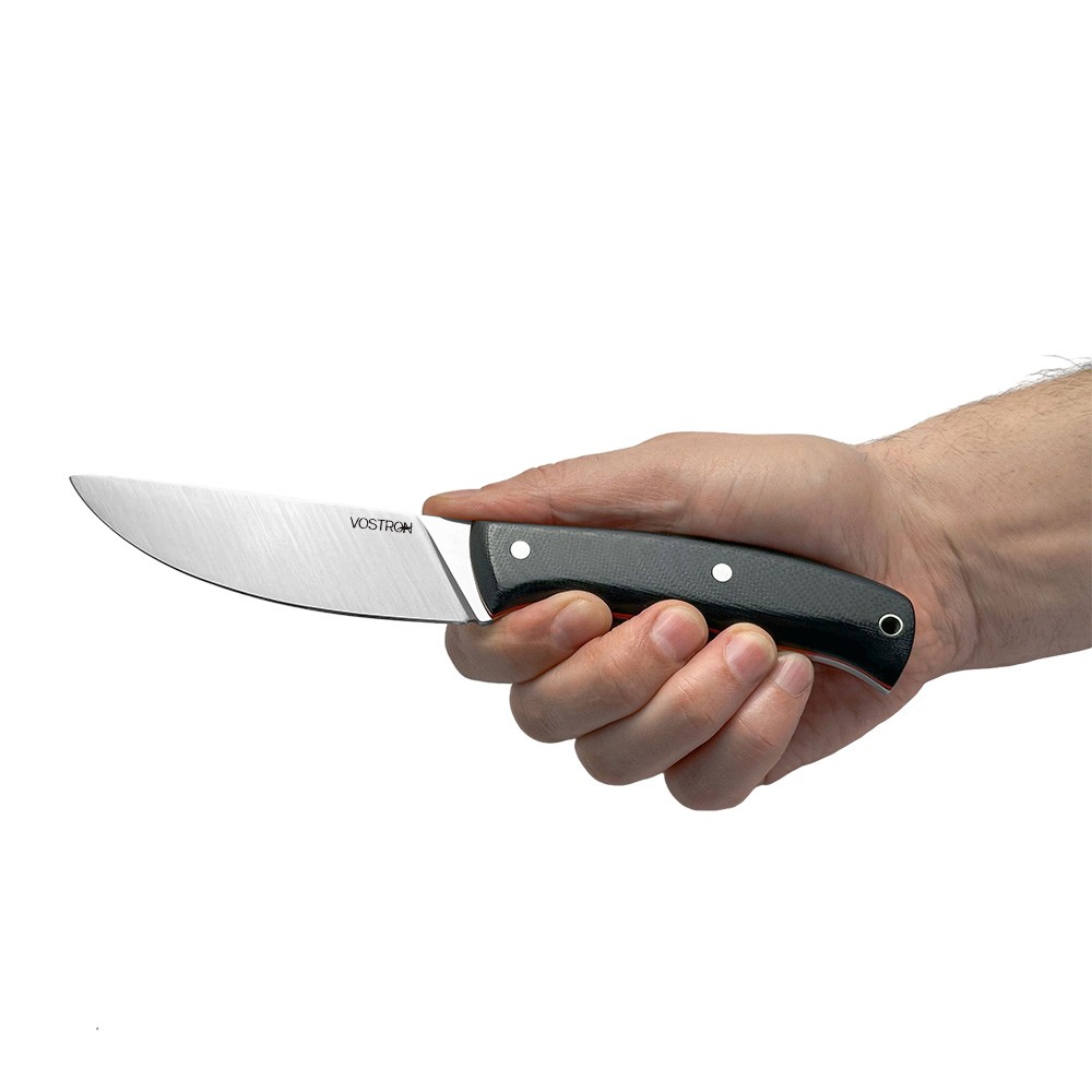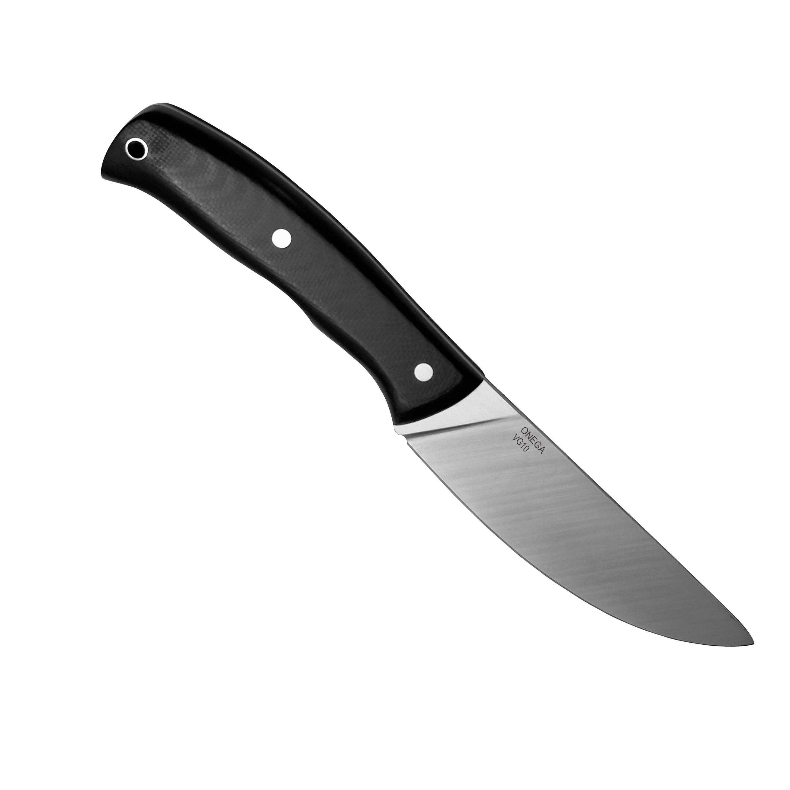 Vostron Onega — фиксированный нож, идеально подходящий для туризма. Клинок ножа выполнен из прочной инструментальной стали VG10, рукоять — из стеклотекстолита G10. Общая длина ножа — 228 мм, вес — 158 г. В комплекте предусмотрены удобные ножны, которые позволяет безопасно хранить и носить нож.