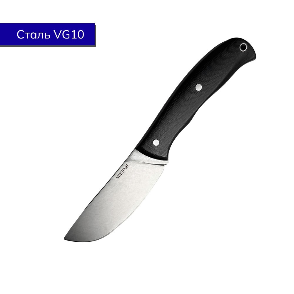 —Нож с фиксированным лезвием Vostron Sever сталь VG10 с черными ножнами из кайдекса VSSV10-K
