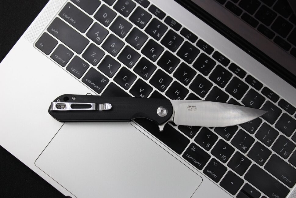 Нож FH41 сразу понравился всем, как только появился на рынке. Он универсален и прочен, производитель продумал каждую мелочь. Форма клинка классическая – drop-point, с приспущенным к острию обухом. Изготавливается он из высококачественной стали D2 с твёрдостью 60 HRC. Фиксирует клинок в закрытом и открытом положении механизм Flipper, который показывает высочайшую надёжность.