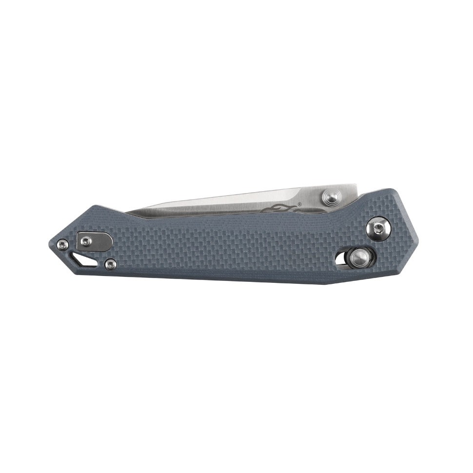 Клинок извлекается из ножа при помощи обычных стальных шпеньков и фиксируется фирменным замком, именуемым Axis Lock. За скорость и плавность извлечения отвечают осевые подшипники. Форма клинка clip-point довольно удобна для решения многих задач в быту. Достаточно популярны модели с подобным профилем среди охотников и любителей экстремальных развлечений. Форма одинаково хороша и для использования в роли инструмента, и также для применения в качестве оружия.