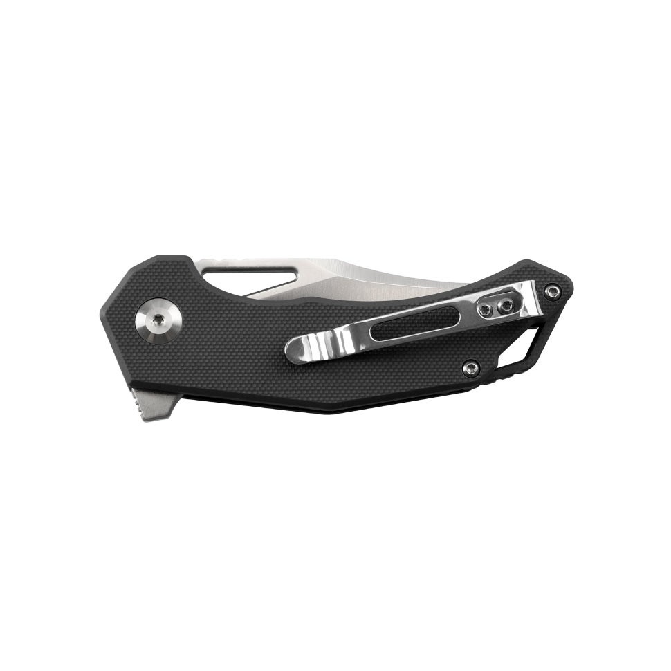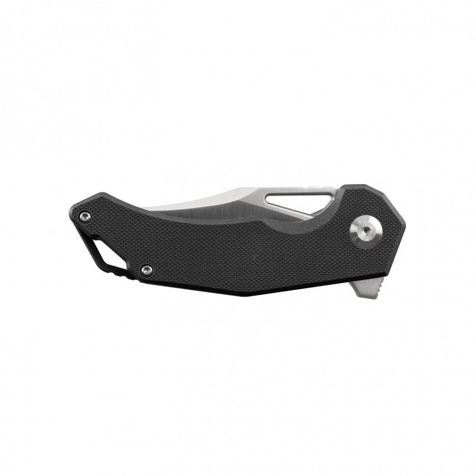 Лезвие ножа извлекается при помощи незначительного отверстия под большой палец у основания, а также за счет флиппера с противоскользящими пропилами. Фиксируется клинок благодаря стальному замку типа Liner-Lock.