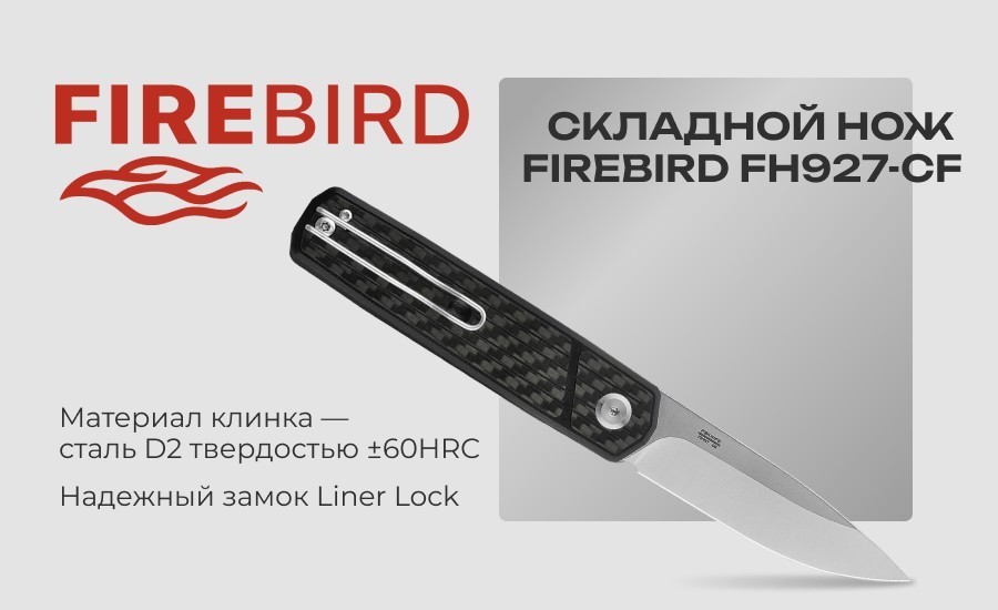 Firebird FH927-CF — это сбалансированный складной нож с надежной конструкцией, современными материалами и универсальной формой клинка. Отличный выбор для тех, кто ищет практичный и долговечный инструмент для любых задач.