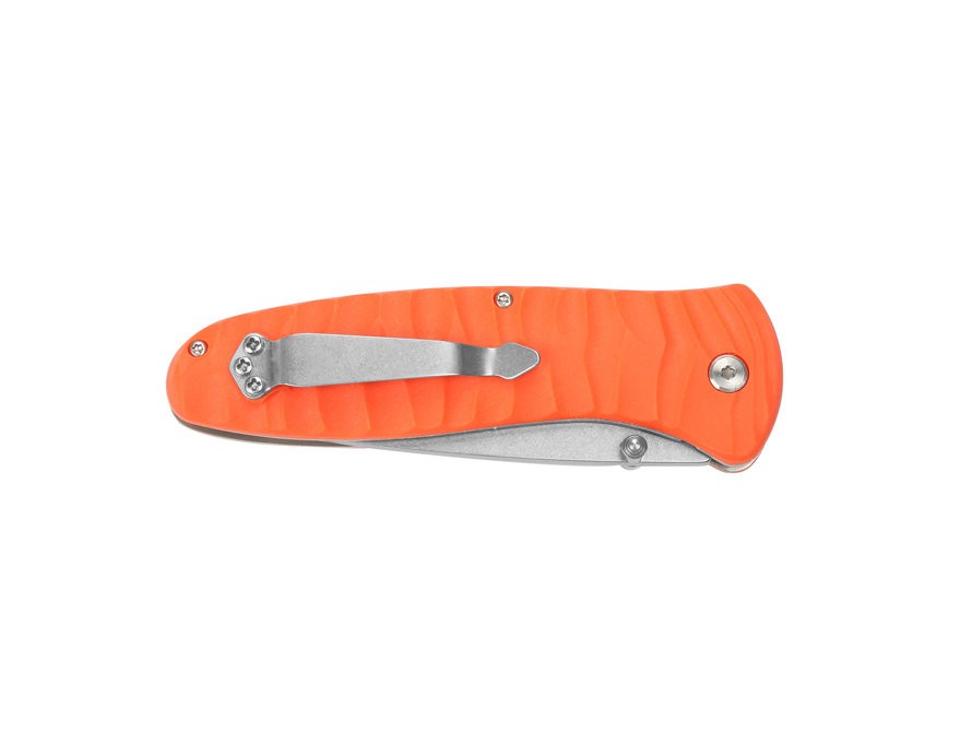 Нож пригодится рыбакам, охотникам, и вообще крайне удачен для применения в активном отдыхе. Производители придали лезвию форму drop point и сделали широкие спуски. Поверхность металла отшлифована крупными абразивными камнями по методу stone wash.