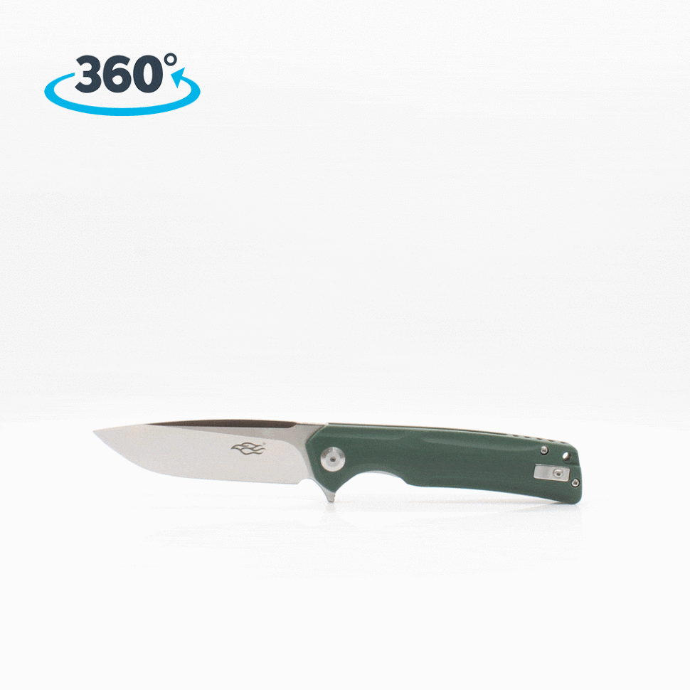 Есть насечки на обухе. Нож обладает круглыми металлическими подшипниками. Эргономичная рукоять с глубокой выемкой, выглядит достаточно типично. Комфортно удерживать, флиппер не будет скользить, не сместится. Плотно ложится в ладонь, удобство при любом захвате. Ручка имеет аккуратный внешний вид, шероховатая на ощупь. Всё благодаря наличию в составе стеклотекстолита G10. Данный материал являет собой смесь стеклоткани и эпоксидных смол, что обеспечивает соответствующие качества: прочность, стойкость к температурам, механическим повреждениям, к износу. G10 представляет собой надёжный и практичный компонент. И поэтому нож с рукоятью из такого материала прослужит долго, выдерживая всевозможные внешние воздействия. Это особенно актуально ввиду того, что FH91 позиционируется, как нож для нужд туриста. А значит, он должен быть приспособлен под различные условия эксплуатации, порой, достаточно сложные.