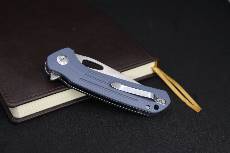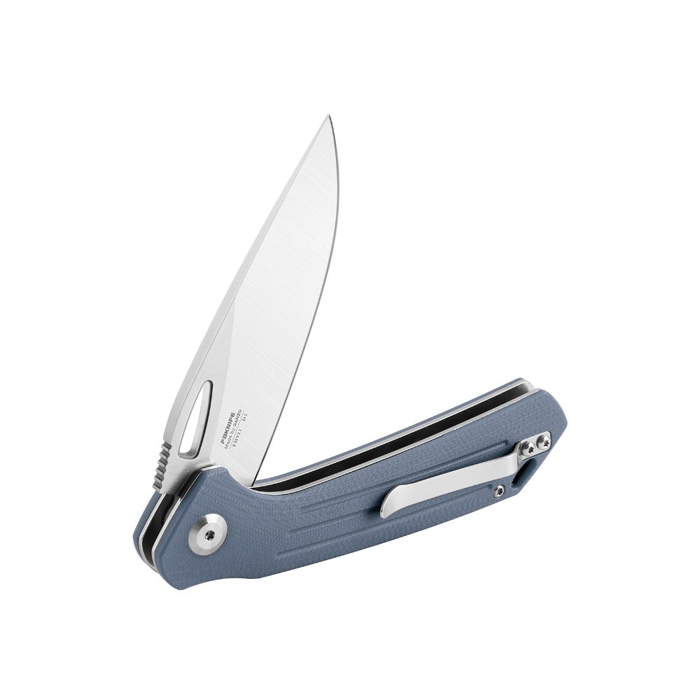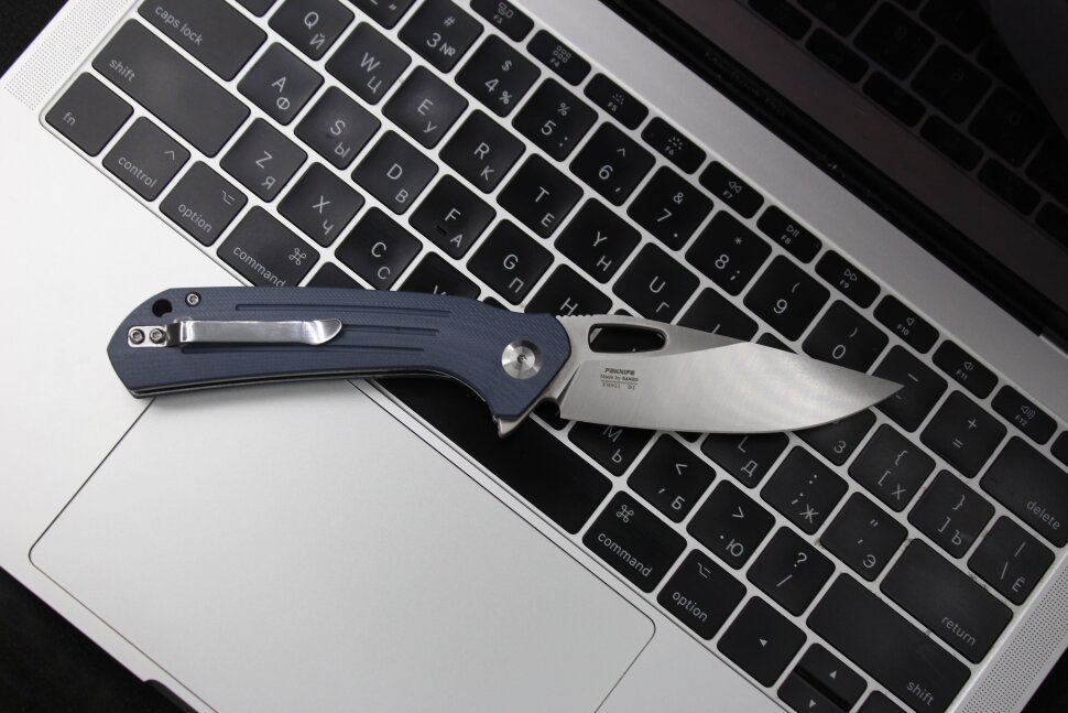 Складная модель ножа Ganzo Firebird FH921 представляет собой изделие карманного формата, рассчитанное, в том числе, на туристов. Специфика этого ножа – в необычной форме ручки, которая имеет выемку в верхней части ближе к обуху. Насечки на обухе гарантируют хорошее сцепление с пальцем пользователя. Другая особенность флиппера – отверстие в области клинка на месте, где обычно располагается шпенёк. Конструктивный элемент помогает запросто открывать изделие буквально одной рукой. Осевой винт обеспечен круглым металлическим подшипником.