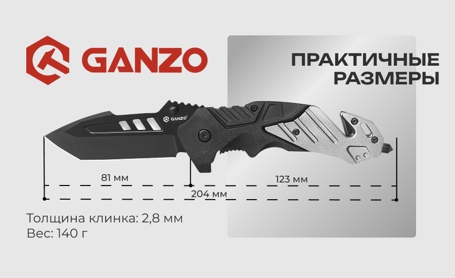 Ganzo G629-GY — это универсальный складной нож, предназначенный для туризма, охоты, рыбалки, а также повседневного ношения (EDC). Его конструкция сочетает в себе практичность, надежность и функциональность. Одной из отличительных особенностей модели является наличие встроенного стропореза и стеклобоя, что делает нож особенно незаменимым в экстренных ситуациях.
