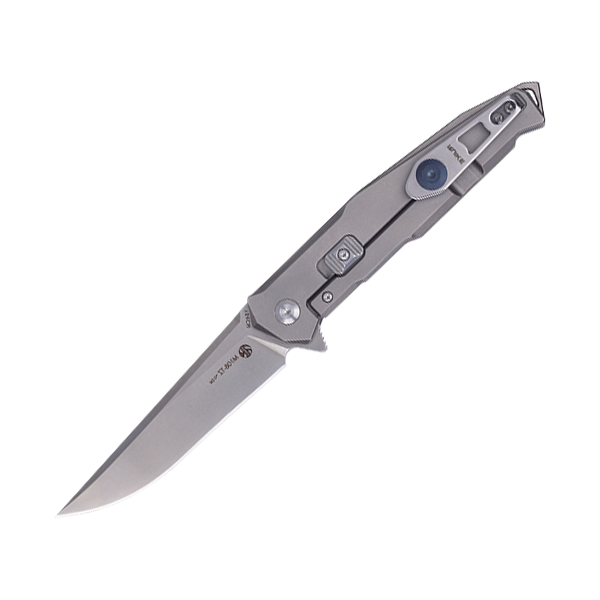 Рукоятка ножа изготовлена с использованием материала TC4. Это титановая рукоять, у которой практически нет выступающих элементов либо насечек. Фиксирующий замок Frame lock имеет предохранительную систему Beta Plus и съемный наконечник. Он препятствует истиранию, деформации и заеданию от контакта двух металлов. Односторонняя съемная клипса ножика обладает пластинчатой конструкцией. Также она оснащена стопором контрастного цвета, за счет которого исключается риск случайного соскальзывания. Материалом проставки рукоятки является титан. Проставка выступает за рукоятку сквозным отверстием для всевозможных шнурков, карабинов и веревок.