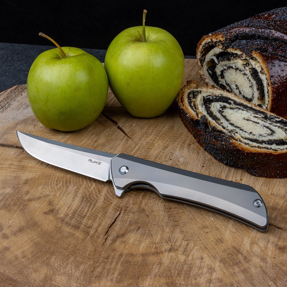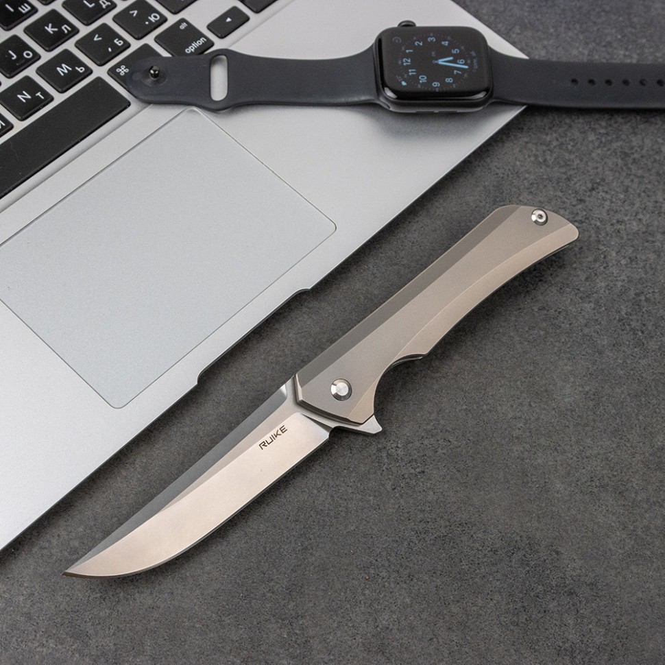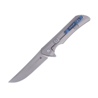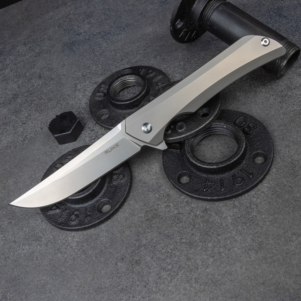 Весит экземпляр 110 грамм, общая длина – 21,5 сантиметра. Толщина клинка – три с половиной миллиметра. В качестве материала рукоятки был использован TC4 (titanium). Твердость металла достигает 58-60 единиц Роквелла, что довольно хороший показатель для такого типа инструментов. Нож представлен в двух цветах, сером и серебристом.