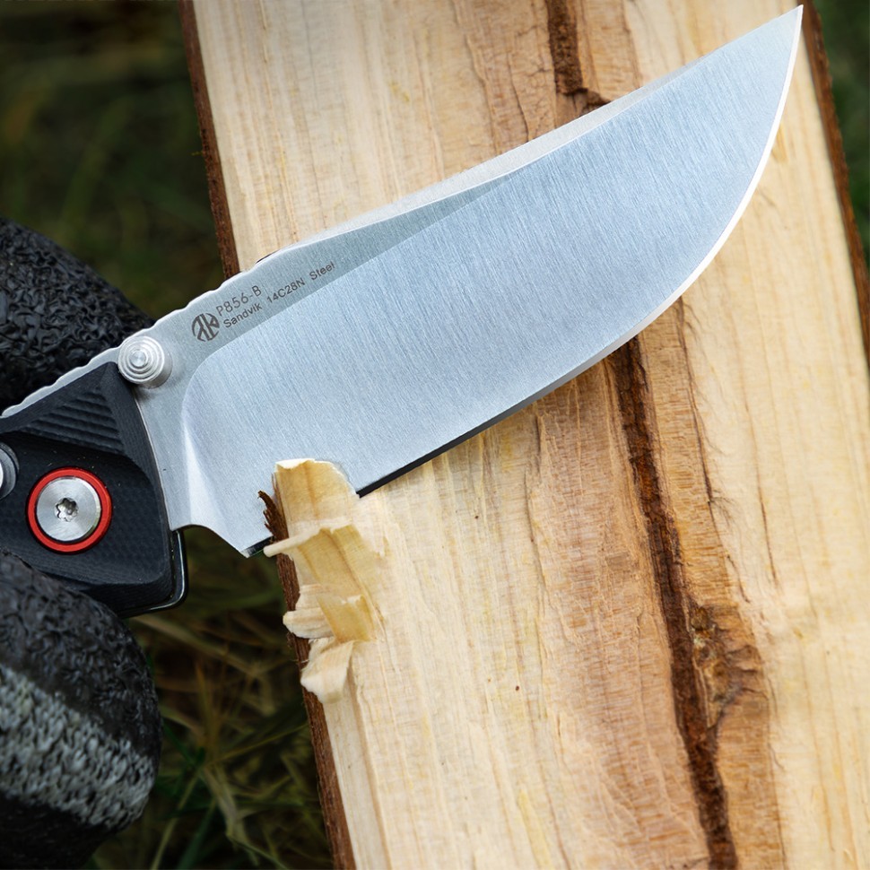 Клинок изготовлен из шведской нержавеющей стали Sandvik 14C28N с твердостью 57–59 HRC, что обеспечивает отличную остроту, устойчивость к износу и коррозии. Сталь легко затачивается и сохраняет рабочую кромку на протяжении длительного времени, что делает нож особенно практичным для регулярного использования в различных условиях.