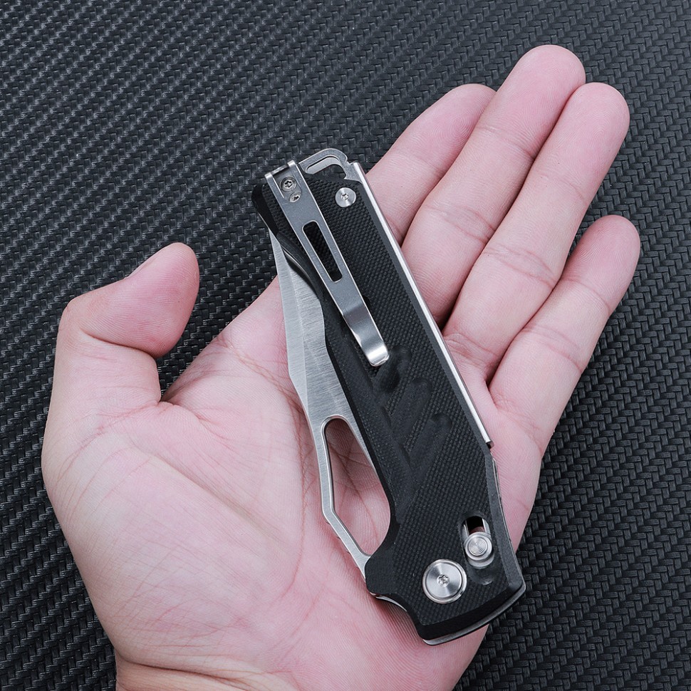 Рукоять изготовлена из износостойкого стеклотекстолита G10 черного цвета — надежного материала, сохраняющего сцепление даже во влажных условиях. Усиленный монолайнер значительно повышает прочность конструкции, снижает люфты и обеспечивает стабильную работу замка. Фиксация лезвия осуществляется с помощью Ambi Lock — надежной симметричной системы, известной своей долговечностью и удобством в использовании одной рукой. Стальной шарикоподшипник в осевом узле отвечает за плавное и быстрое открытие.
