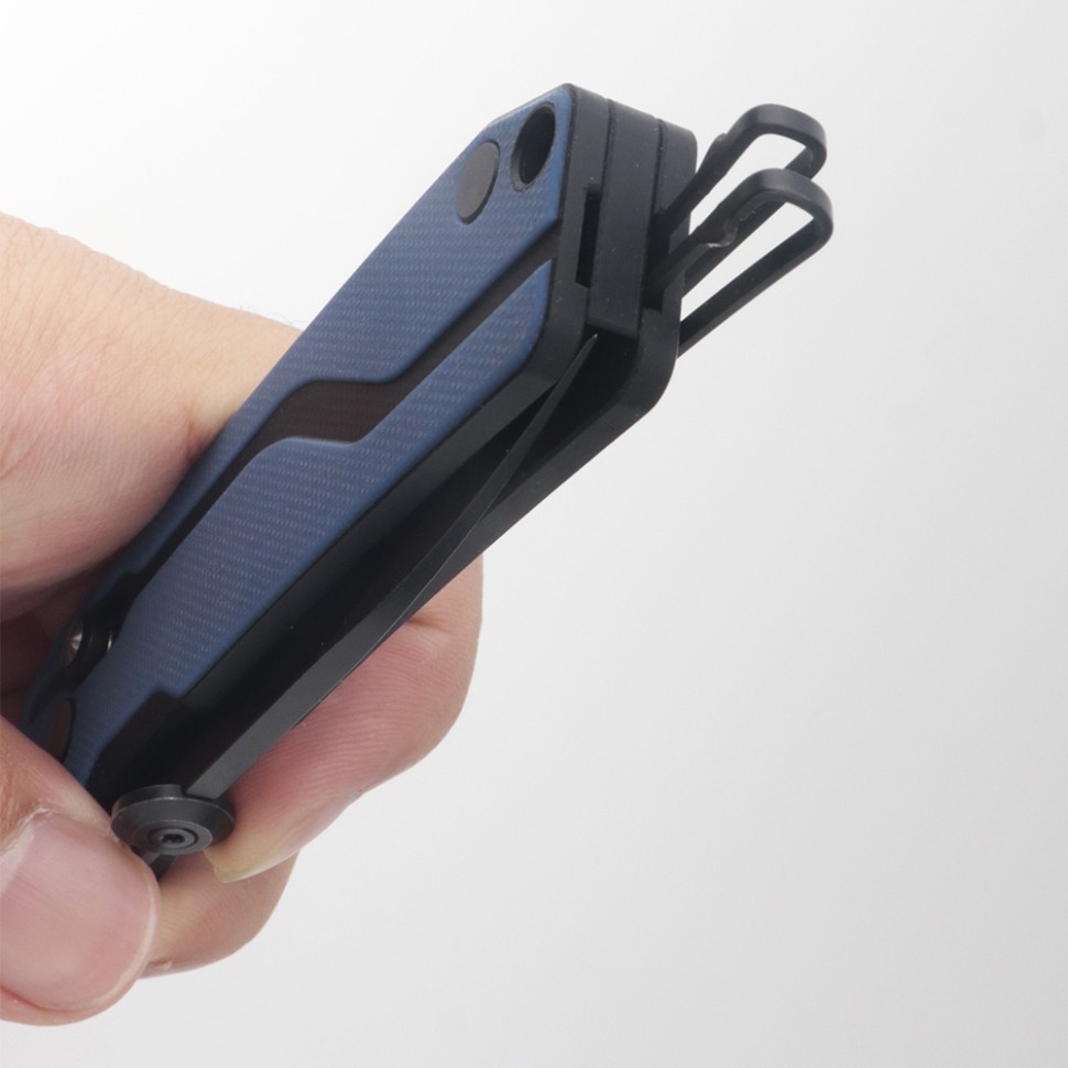Рукоять выполнена из прочного стеклотекстолита G10 с внутренними стальными лайнерами из нержавеющей стали 420, что обеспечивает прочность при минимальном весе. Осевой узел собран на шайбах — решение, проверенное временем, обеспечивающее стабильную работу механизма и простое обслуживание.