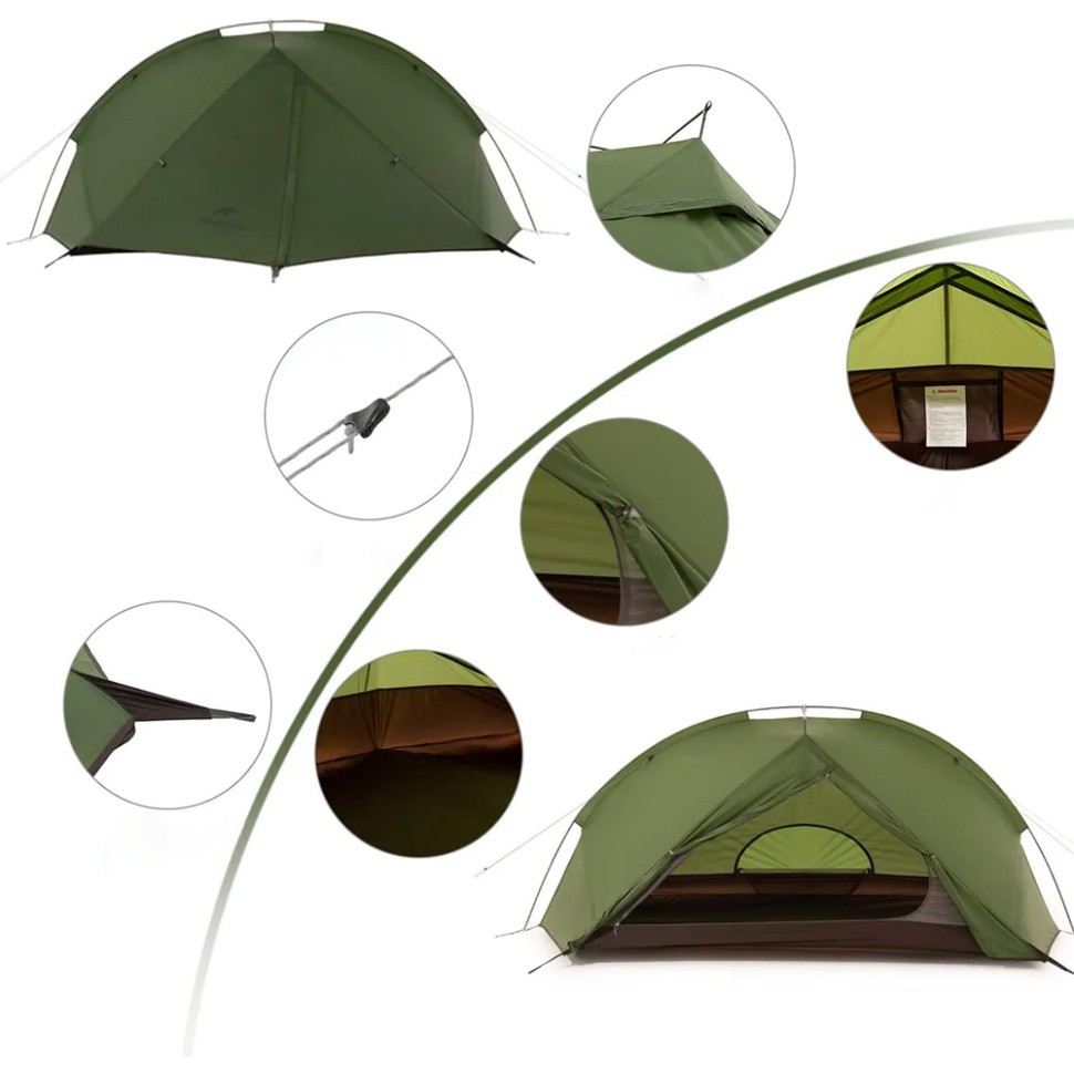Сверхлегкая и удобная палатка Naturehike Tagar NH17T180-J отлично подходит для туристов и любителей кемпинга. Благодаря водонепроницаемому нейлоновому тенту с силиконовым покрытием и усиленным алюминиевым дугам она выдерживает суровую погоду, обеспечивая надежное и долговечное укрытие для походов. Легкая и компактная, она идеально подходит для тех, кто ищет прочную, водонепроницаемую и ветроустойчивую палатку для своих путешествий.