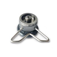 Адаптер выполнен из износостойкого сплава меди, нейлона и алюминия. Металл не восприимчив к агрессивной среде, не поддается ржавчине и не деформируется даже при частом использовании. В конструкцию клапана встроена металлическая подставка, чтобы баллон не заваливался из стороны в сторону. Для фиксации нужно положить баллон горизонтально на поверхность. Вместе с подставкой переходник не превышает 5.5 х 5.5 х 3.5 сантиметров. Адаптер весит 63 грамма.