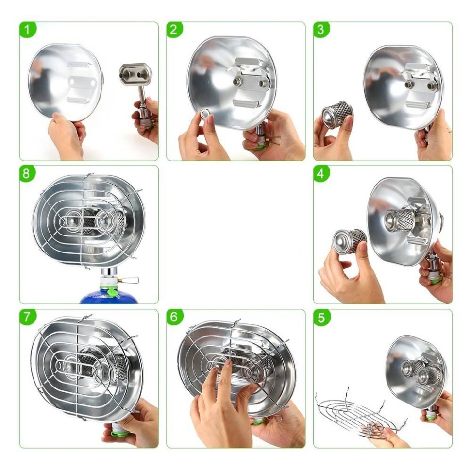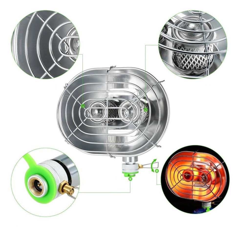 Размеры газового обогревателя не превышают 21,5 x 20 x 11 сантиметров, при весе 470 грамм. Нагреватель достигает мощности до 1050Вт. Высокопрочные пластины из медного и алюминиевого сплава держат температуру и равномерно распределяют тепло по всей поверхности. Нагревательный элемент покрыт защитной сеткой. После выключения, необходимо закрыть клапан и остудить обогреватель до средней температуры. Прибор полностью разбирается и упаковывается в плотный мешок с затягивающейся горловиной.