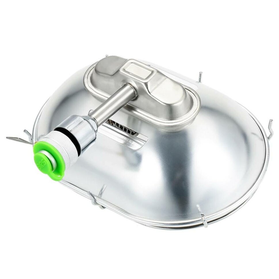 Размеры газового обогревателя не превышают 21,5 x 20 x 11 сантиметров, при весе 470 грамм. Нагреватель достигает мощности до 1050Вт. Высокопрочные пластины из медного и алюминиевого сплава держат температуру и равномерно распределяют тепло по всей поверхности. Нагревательный элемент покрыт защитной сеткой. После выключения, необходимо закрыть клапан и остудить обогреватель до средней температуры. Прибор полностью разбирается и упаковывается в плотный мешок с затягивающейся горловиной.