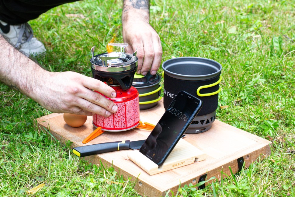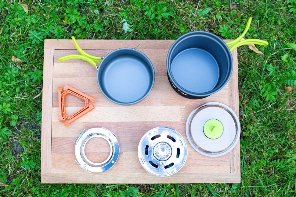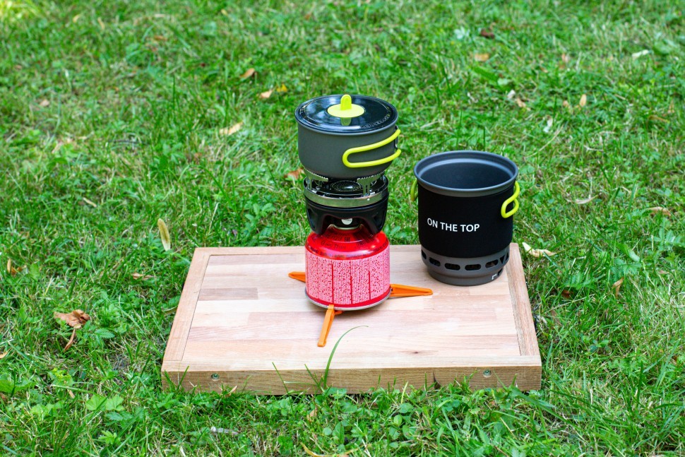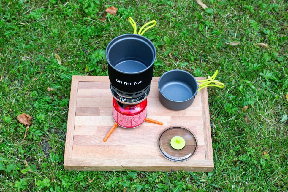 Система приготовления пищи для использования в туризме и активном отдыхе. Включает в себя горшок, мини-сковородку, газовую плитку, держатель, подставку для газовых баллонов.
