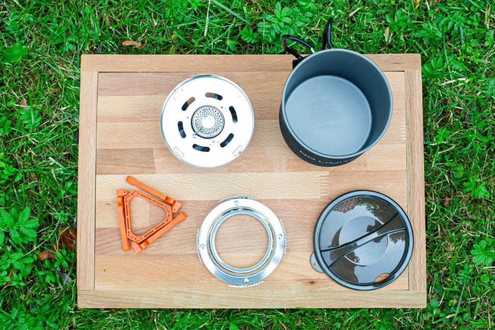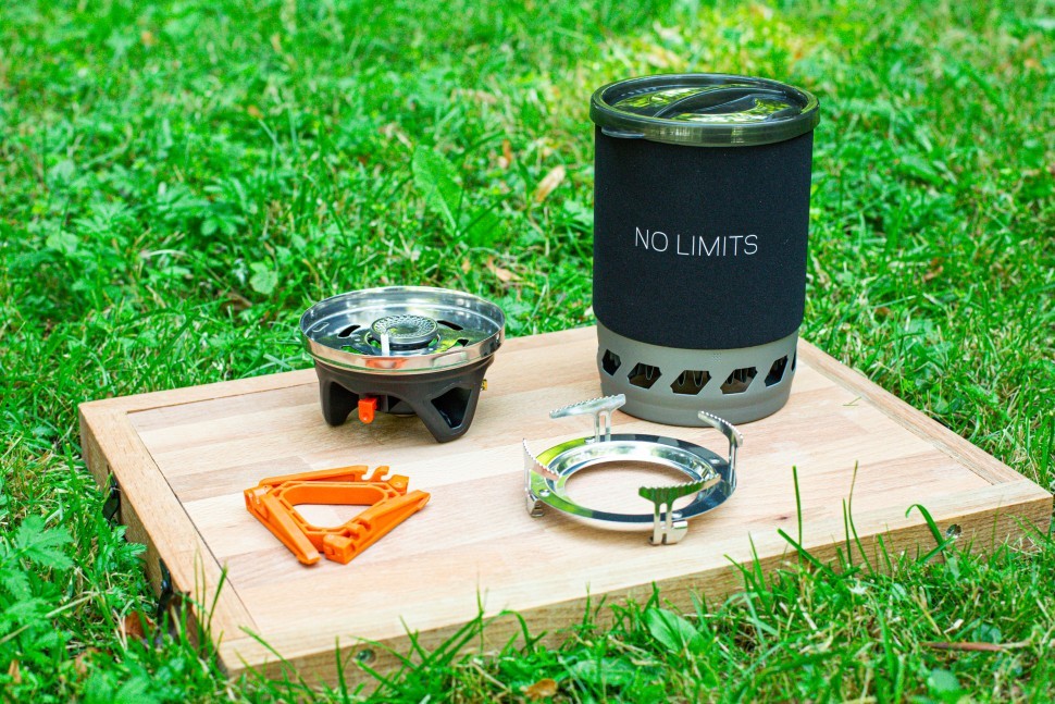 Система приготовления пищи, которая пригодится вам в туристической деятельности и активном отдыхе. Включает в себя горшок, газовую плиту, держатель для горшка, а также подставку для газовых баллонов.