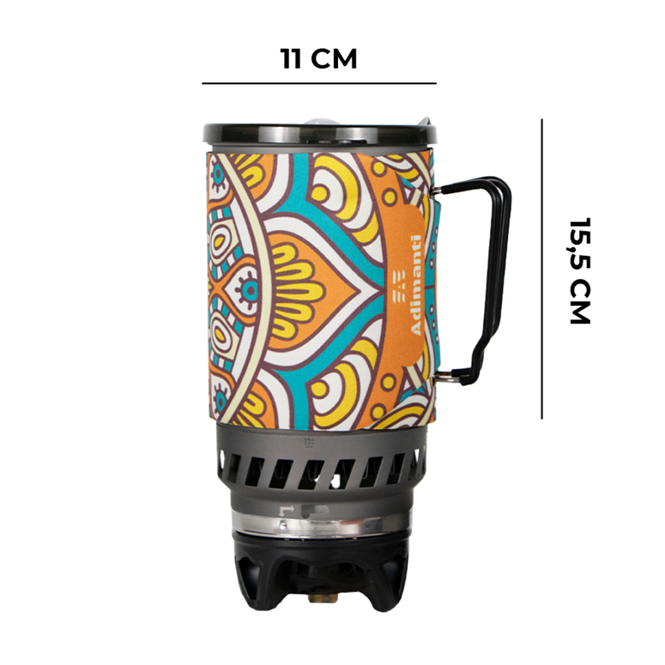 Горшок объёмом 1400 миллилитров изготовлен из твёрдого анодированного алюминия. Размеры изделия составляют: диаметр равен 110 миллиметрам, а высота – 155 миллиметрам. Горшок обеспечен мягкой крышкой из термопластичного эластомера с отверстием для кофе, не содержит BPA. Складная ручка из нержавеющей стали с силиконовым покрытием. Ультразвуковая сварка без заклёпок на котле. Алюминиевый теплопередатчик и лобовое стекло. Снаружи горшка для защиты предусмотрена чёрная неопреновая прокладка.