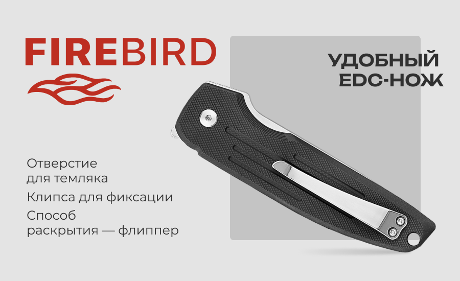 Нож FH926-BK — это удобный эргономичный EDC нож, который также станет отличным помощником в походе, на охоте и на рыбалке. Приподнятый упор для большого пальца на обухе ножа облегчает использование ножа для задач, требующих применения силы, и гарантирует контроль управления. Форма клинка Drop Point подойдет как для режущих, так и для колющих движений. Компактный нож отличается стильным дизайном и превосходным качеством сборки.