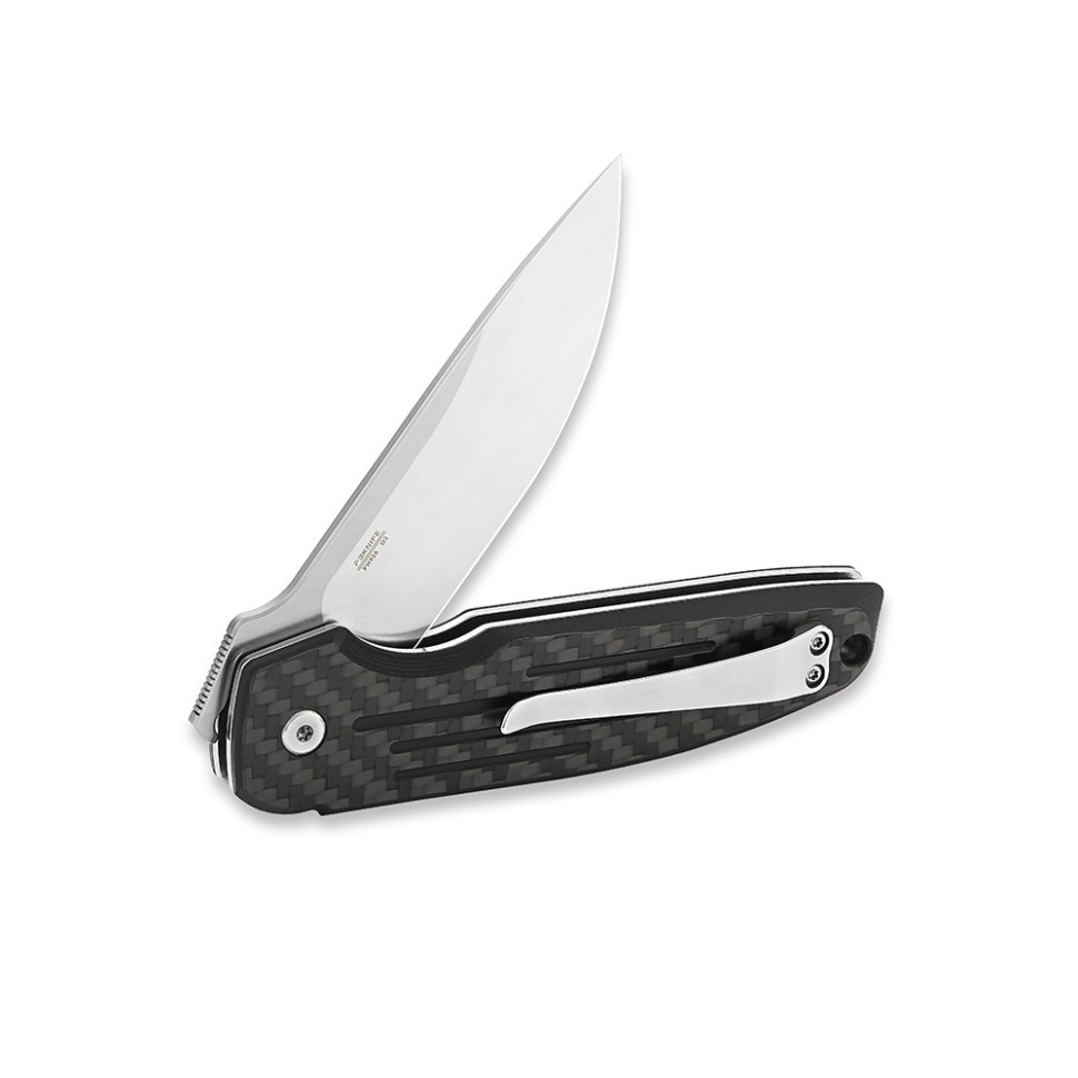 Клинок складного ножа FH926-CF выполнен из полунержавеющей стали D2 твердостью ±60 HRC. Такая сталь обладает высокой прочностью, вязкостью и коррозионной стойкостью, что гарантирует долгий срок эксплуатации и сохранение остроты режущей кромки. Углерод в составе сплава придает ножевой стали D2 отличную твердость, хром добавляет устойчивость к ржавчине.