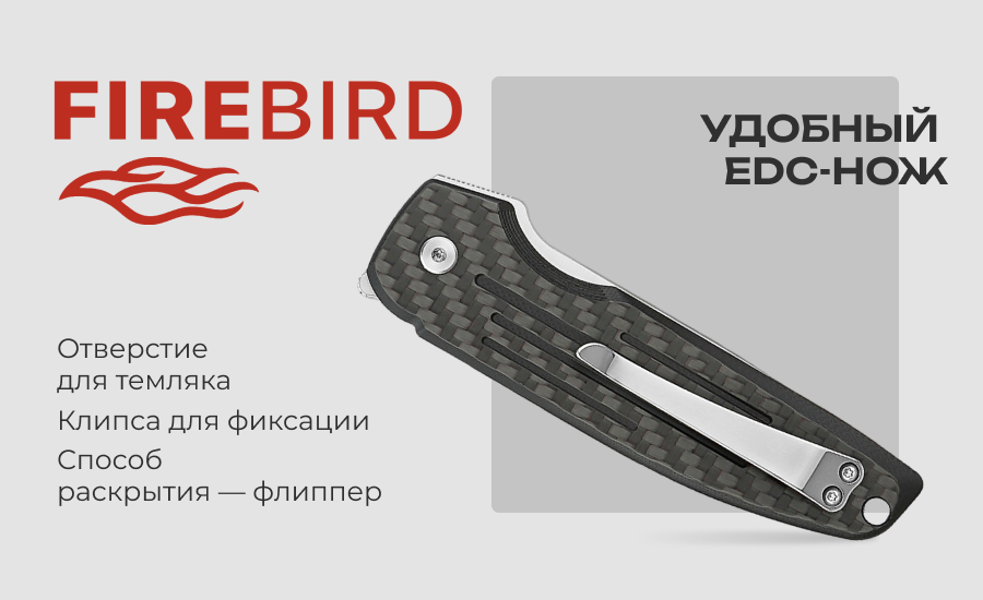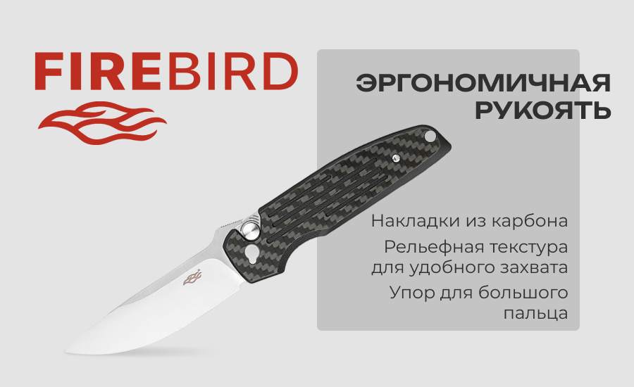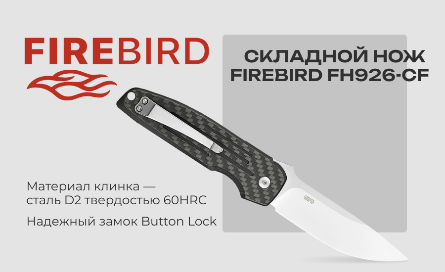 Нож FH926-CF — это удобный эргономичный EDC нож, который также станет отличным помощником в походе, на охоте и на рыбалке. Приподнятый упор для большого пальца на обухе ножа облегчает использование ножа для задач, требующих применения силы, и гарантирует контроль управления. Форма клинка Drop Point подойдет как для режущих, так и для колющих движений. Компактный нож отличается стильным дизайном и превосходным качеством сборки.