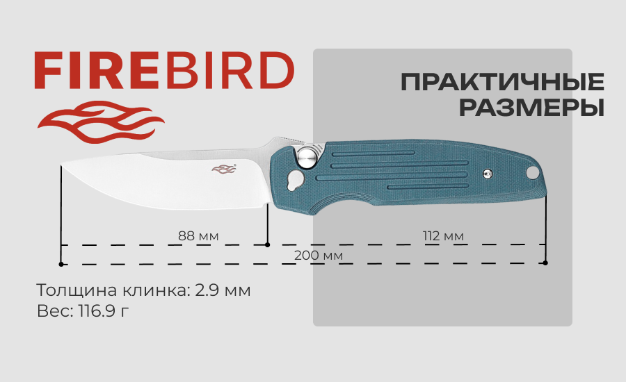 Нож FH926-GY — это удобный эргономичный EDC нож, который также станет отличным помощником в походе, на охоте и на рыбалке. Приподнятый упор для большого пальца на обухе ножа облегчает использование ножа для задач, требующих применения силы, и гарантирует контроль управления. Форма клинка Drop Point подойдет как для режущих, так и для колющих движений. Компактный нож отличается стильным дизайном и превосходным качеством сборки.