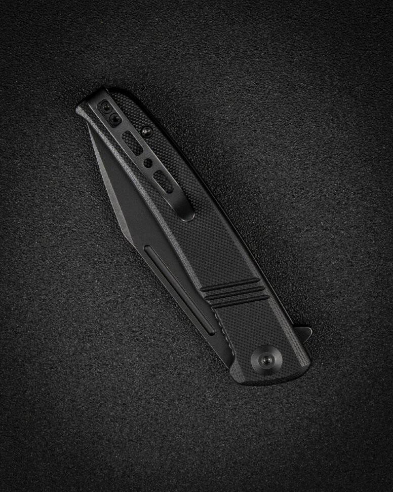 Рукоятка изготовлена из композитного материала G10. Она устойчива к загрязнениям, не скользит в руке и не впитывает запахи. Открывается складной нож большим пальцем с помощью бокового лайнера. Замок liner lock защищает владельца от случайного раскрытия в кармане. Плавное скольжение лезвия обеспечивает осевой узел, в который встроен керамический подшипник.