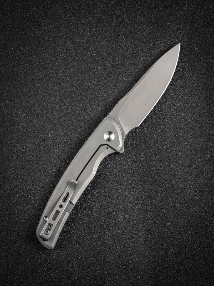 Рукоять ножа также изготовлена из нержавеющей стали. Антикоррозийные свойства защищают клинок от преждевременного износа. Ножу требуется минимальный уход, поэтому достаточно протереть лезвие и рукоять сухой тканью из микрофибры перед тем как убрать его в чехол. Клинок закрывается с помощью замка Frame lock. Подпружиненная пластина надежно фиксирует лезвие в строении рукояти. Лезвие не выскакивает само по себе и уж точно случайно не поранит владельца. Керамический подшипник в осевом узле обеспечивает клинку плавный ход. На верхней части обуха есть небольшой промежуток с ребристой поверхностью. На выемке удобно разместить палец, чтобы не порезаться во время работы. Клипсу на рукоятке можно переставлять с одной стороны на другую, что очень удобно для левшей.