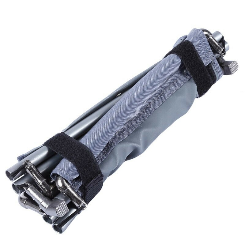 Раскладные ножки стула изготовлены из легкого, но в то же время прочного авиационного алюминия 6061. Стул выдержит большую тяжесть и не погнется даже под большим давлением. Также ножки обработаны покрытием, с высокой стойкостью к коррозии и устойчивым к царапинам. Весит походный стул всего 434 грамма. В сложенном виде занимает 30 x 6 x 6 сантиметров. В развернутом 30 x 23 x 24 см.