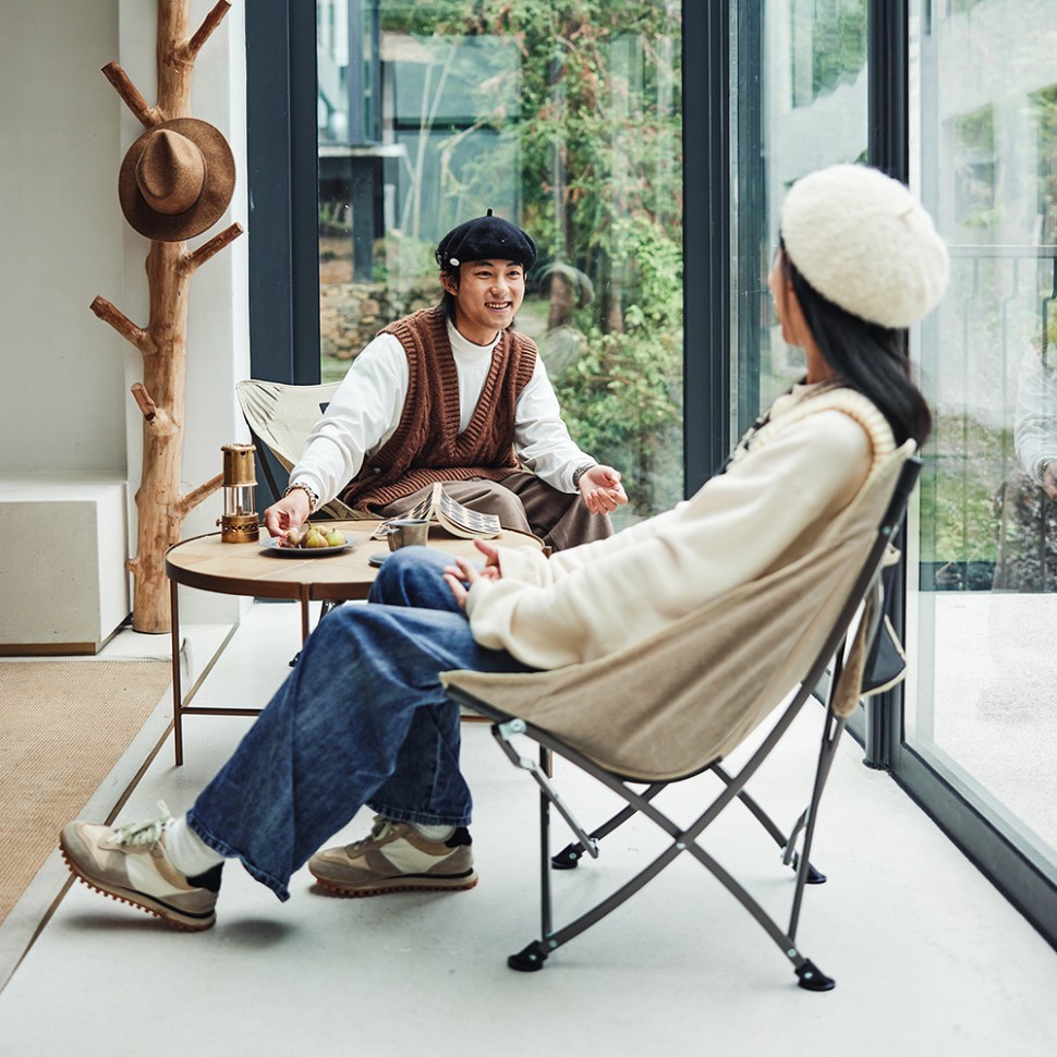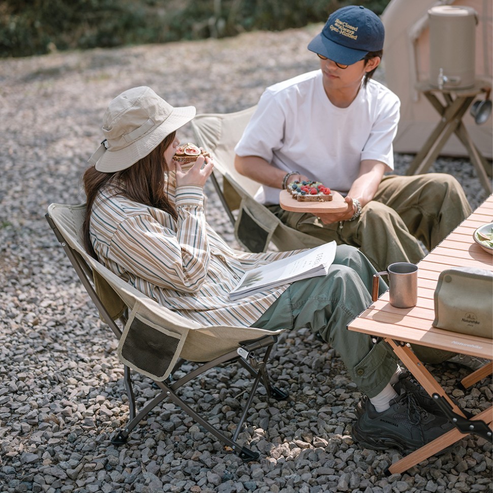 Сиденье стула выполнено из ткани Оксфорд плотностью 600D. Ткань обладает высокой прочностью, воздухопроницаемостью, износостойкостью и устойчивостью к разрывам. Благодаря отличной стойкости цвета стул не выцветает на солнце. В нижней части сиденья расположена сетка, которая обеспечивает вентиляцию. Из сетки также выполнены 2 кармана — с правой стороны и на спинке стула. В них удобно хранить мелочи, которые должны быть под рукой — например, телефон или фонарь.