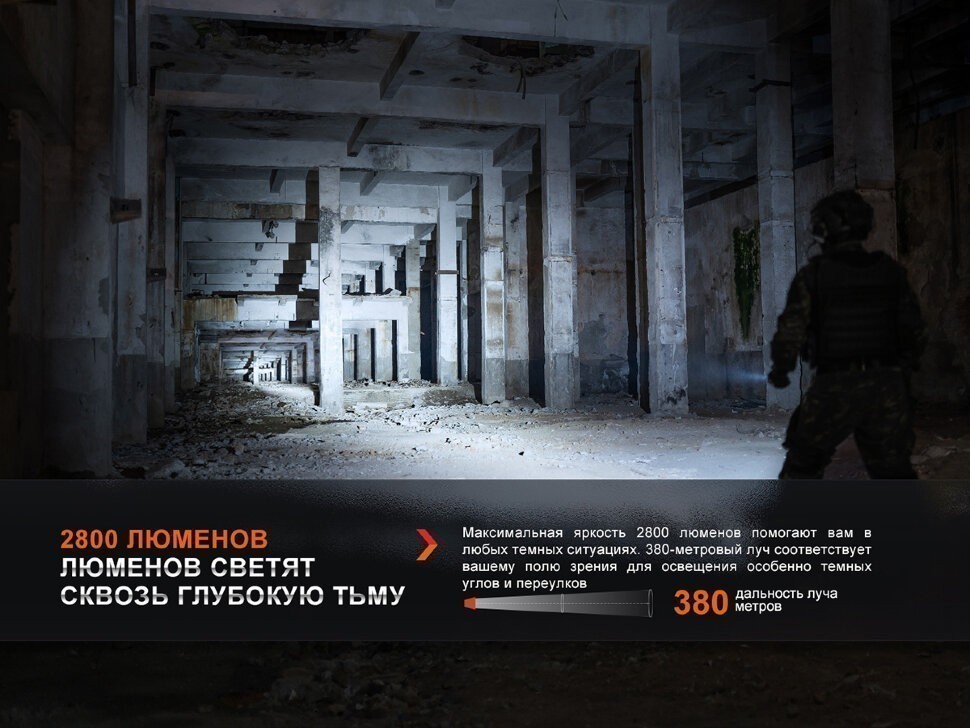 Отметим, что эти параметры работы фонаря удалось получить в ходе осуществления лабораторных опытов. Где использовали литий-ионный аккумулятор Fenix ARB-L21-5000 V2.0 при температуре 21 +- 3 градуса Цельсия и влажности 50%-80%. В случае иных условий внешней среды и применяемого аккумулятора показатели свечения будут отличаться.