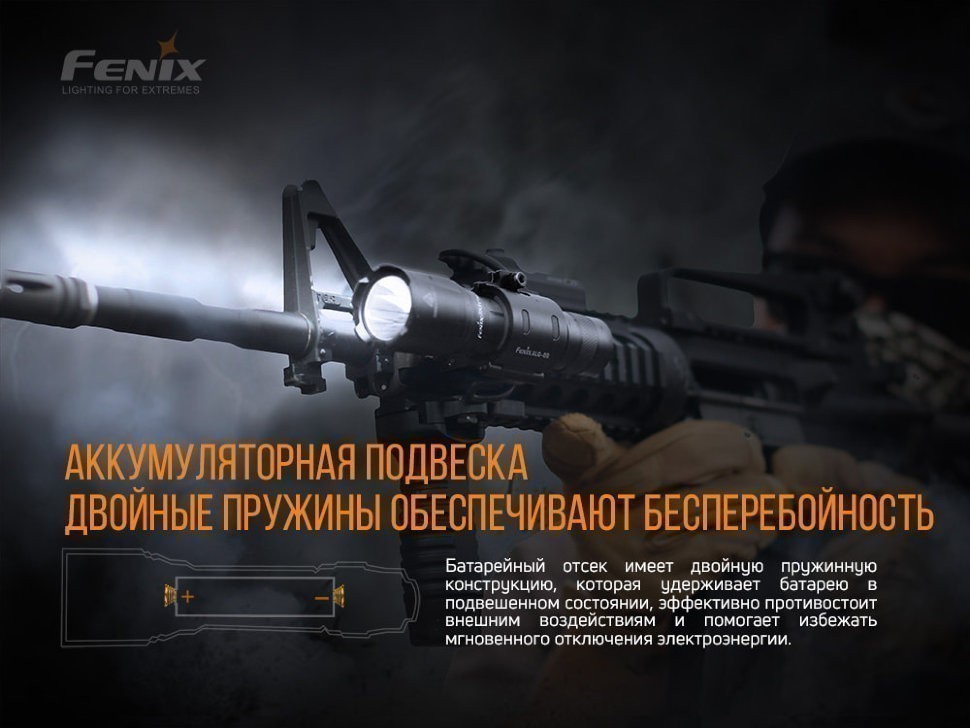 Самая большая предусмотренная здесь яркость – 1600 люменов, а дистанция освещения составляет 335 метров. Предусмотрены Тактические и Дежурные режимы. Помимо того, имеется запатентованный двухфункциональный тактический переключатель для мгновенной тактической активации. Выбирать режим можно одной рукой, в каждом режиме присутствует опция блокировки.