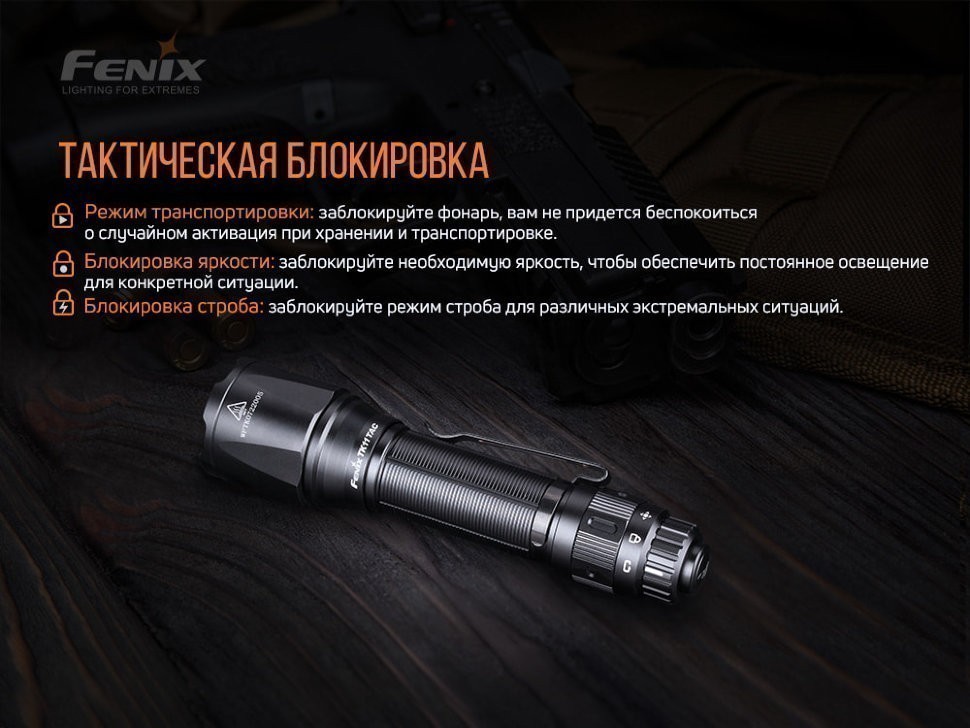 Комплектация: модель фонаря Fenix TK11 TAC, чехол, запасное кольцо для уплотнения стыков корпуса, талон гарантии, руководство к применению.