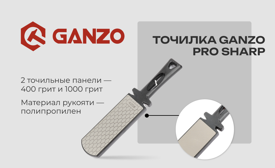 Модель Ganzo ProSharp — это универсальная точилка, предназначенная для ухода за основными инструментами, которые есть в арсенале у каждого пользователя. С ее помощью можно довести до совершенства режущую кромку кухонного или туристического ножа, заточить домашние ножницы или садовый топор.