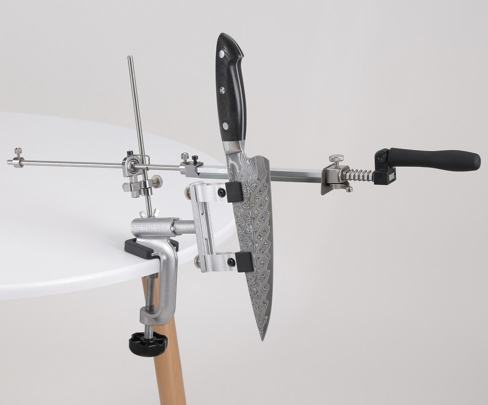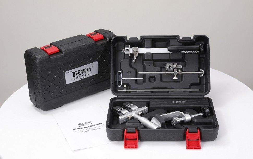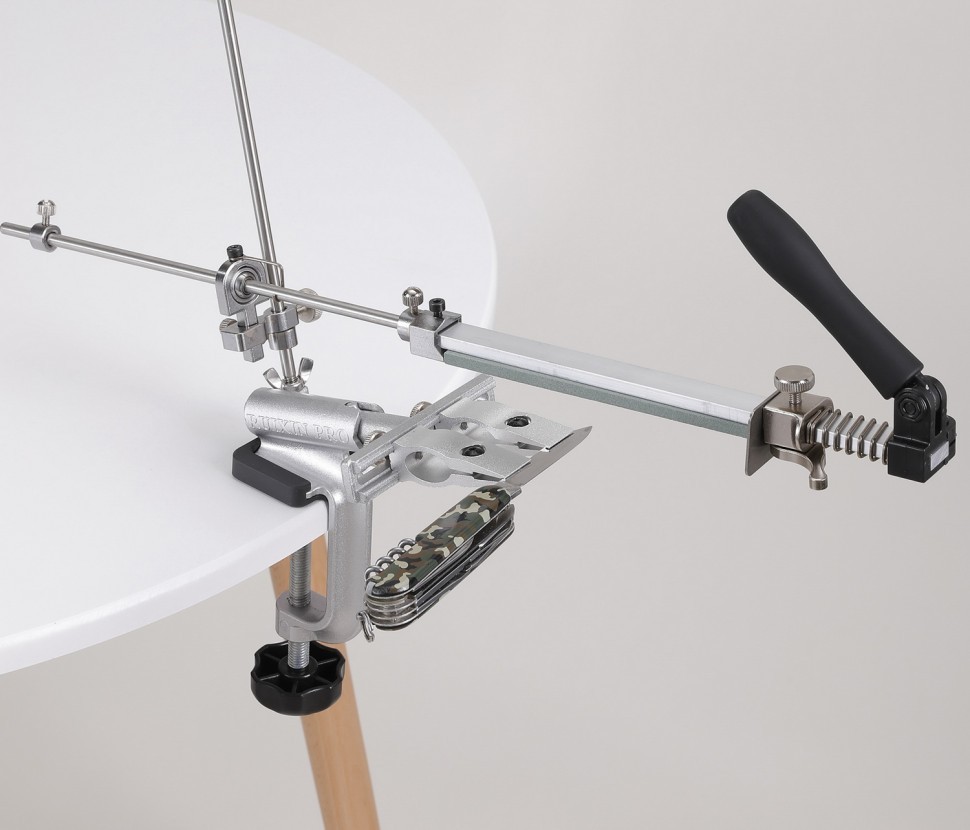 Профессиональный точильный станок Ruixin Pro RX-009 подходит для заточки ножей, ножниц и других режущих инструментов. Модель представляет собой pro-версию точилки Ruixin RX-009. В новом варианте усовершенствовали механизм закрепления лезвия – сразу двое тисков для фиксации инструмента. На точилке можно обрабатывать инструменты самых разных размеров: от крошечных лезвий в мультитулах до массивных охотничьих ножей.